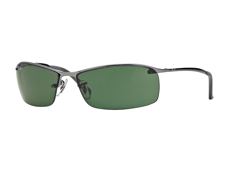 RB3183 – 004/71, possui modelo desportivo prateado e armação semi-rimless.