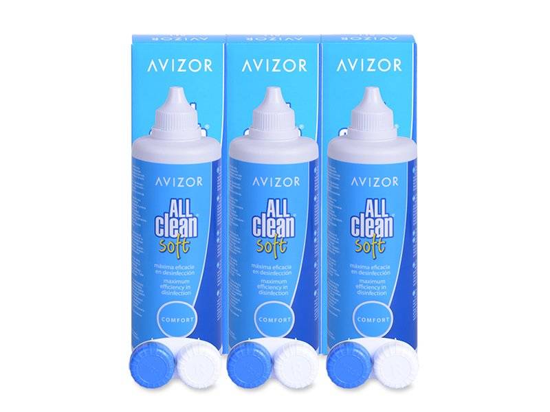 Para cuidar de suas lentes de contacto quinzenais ou mensais, precisas da solução multiuso Avizor All Clean Soft. Compre aqui em um kit triplo de baixo custo e conveniente. Um estojo de lentes de contacto novo é incluso para cada frasco de solução All Clean.